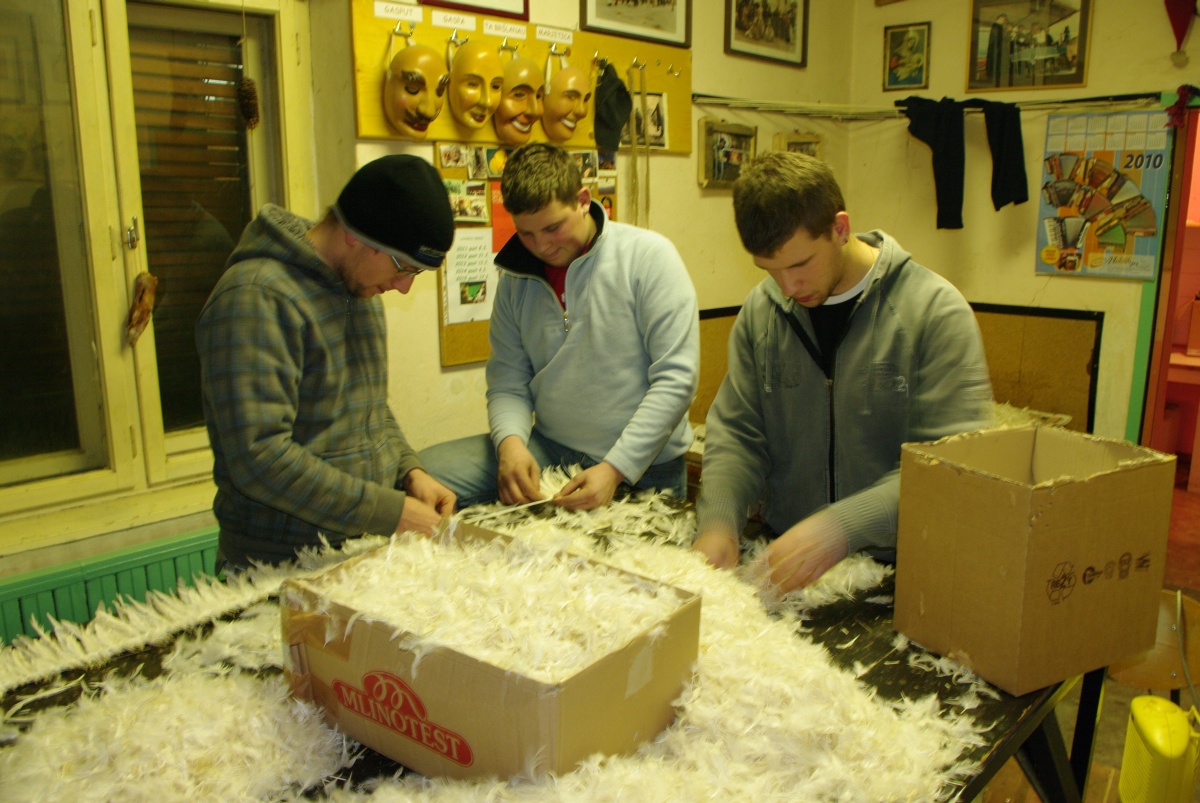 Larfe so vse razen ene izrezljane iz lipovega lesa. Obleke – oprave posameznih likov so narejene posebej za njih, za tri Laufarje se obleka našije vsako leto na novo.
